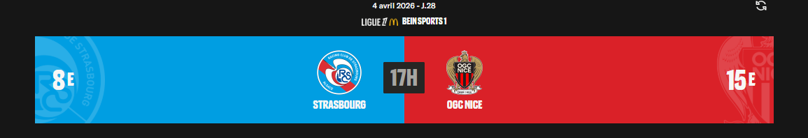 28ème journée de Ligue 1: Strasbourgs - Nice ( les stats)