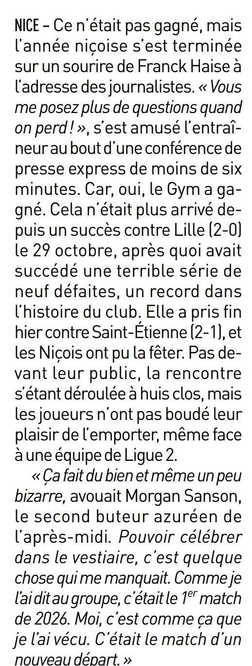 Vainqueur pour la première fois depuis le 29 octobre, l’OGC Nice retrouve quelque peu le sourire, même si le contenu reste inquiétant pour l’équipe de Franck Haise. Ouest France