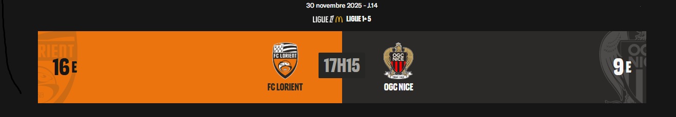 Lire la suite : 14ème journée de Ligue 1 : Lorient - Nice (Stats et news)