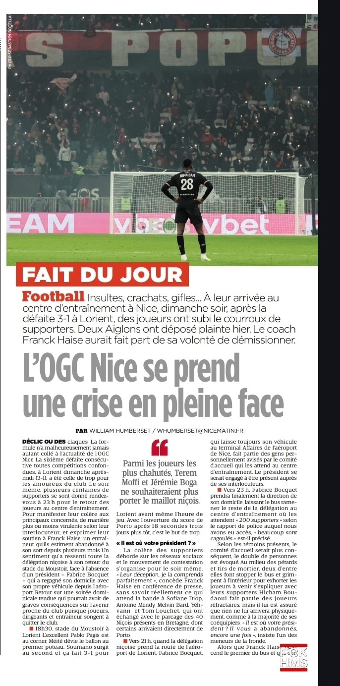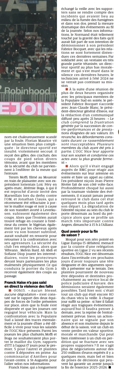 L'UNFP a indiqué :" Face à ces violences et aux plaintes déposées, notre syndicat se réserve le droit de se constituer partie civile dans le cadre des procédures judiciaires en cours, afin de garantir que les responsables de ces agressions répondent de leurs actes devant la justice." tout comme la LFP qui affirme : "La LFP condamne avec la plus grande fermeté les actes de violence commis à l’encontre des joueurs et du staff de l’OGC Nice." Sans déconner il faudrait prendre des pincettes de temps à autres. Rien n'est sûr mais tout est monté en mayonnaise.
