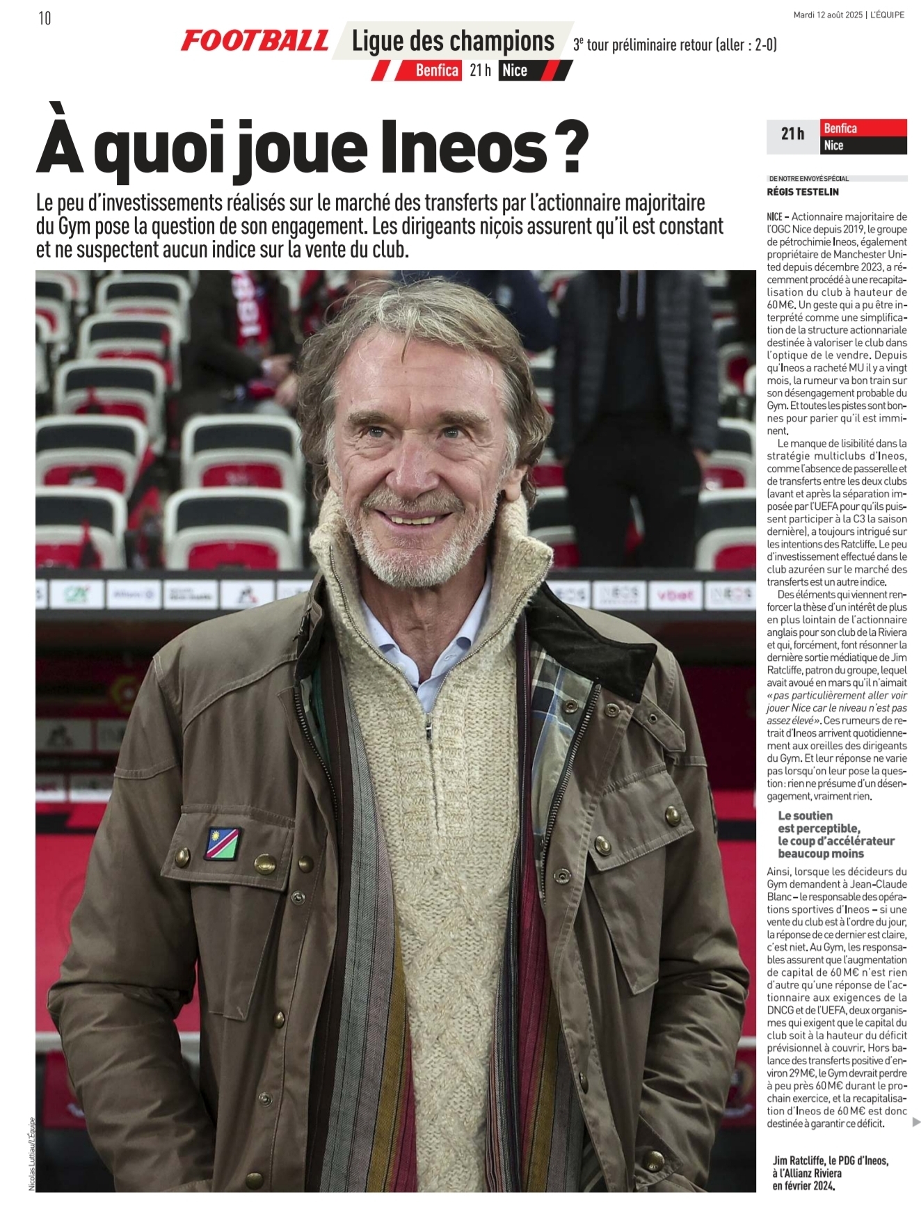Il a la volonté de ne pas prendre de risques. C'est toujours pareil, tant que les dates du mercato ne changeront pas et qu'il y aura des matches officiels durant la période du marché, on devra gérer ce genre de problèmes. Il connaît notre situation, il sait qu'on a beaucoup de blessés mais ça se précise pour lui au niveau de son transfert. Il n'a donc pas envie de prendre des risques et j'en prends acte. Après, si les trois parties se retrouvent dans son départ...