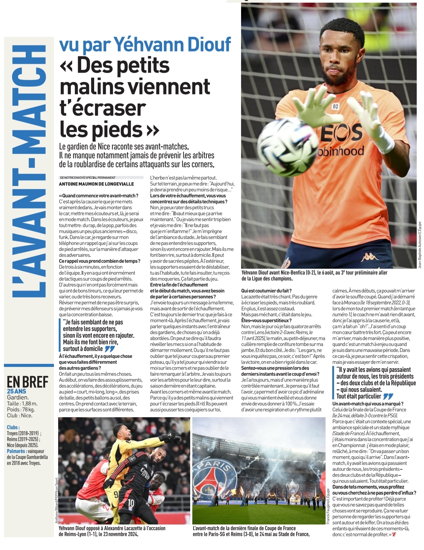"Moïse (Bombito) et Momo (Cho) avaient déjà fait des choses avec nous la semaine dernière. Ils en ont fait plus cette semaine. Ils ne font pas tout, on les allège un peu, mais ils peuvent tout faire. Ils sont sélectionnables à mon sens. Ali (Abdi) a refait des choses collectivement cette semaine, un peu plus aménagées, parce qu'il a un décalage dans sa reprise, mais il est sur le bon chemin. Sur les parties de séance qu'il a faites avec nous, il est bien. J'espère qu'il pourra postuler pour les prochains matches. Après, il y a Dante. Il a son autre genou (le gauche, où il s'est blessé en août, censé être en meilleur état que celui qui avait été touché la saison passée) qui l'a un peu embêté sur la reprise du début de semaine. L'objectif c'est qu'on le récupère après le match". dixit Franck Haise."Tanguy Ndombele ressent des gênes cette semaine. Normalement il va retrouver les terrains ce vendredi.Salis Abdul Samed je l'ai vu à son retour de sélection et j'ai senti qu'il voulait reprendre confiance en faisant des passes à 5 mètres. Il voulait se sécuriser. Il l'a reconnu. Mais ce n'est pas comme ça qu'on reprend confiance. Ce n'est pas grave de perdre le ballon, de faire des erreurs. Là c'est mieux, on sent qu'il a "switcher"
