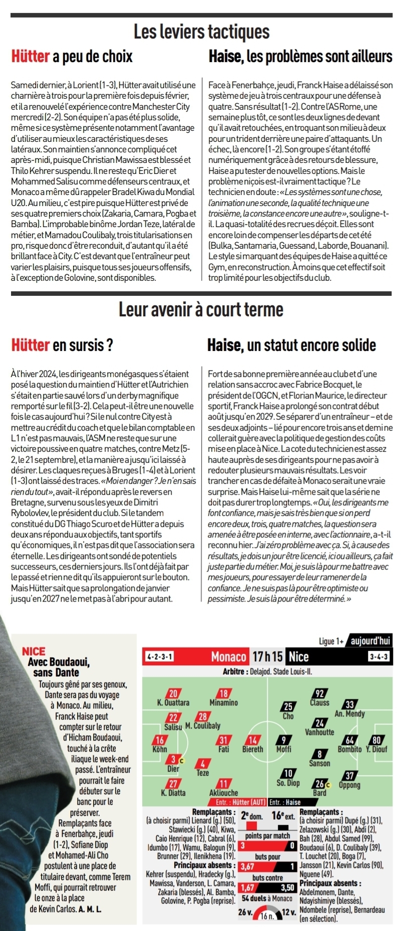 Selon le journal l'Equipe Franck Haise pourrait faire une défense à 5, demain.