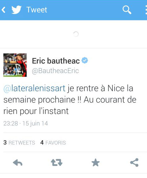 Eric Bauthéac nous a répondu suite à notre info concernant son éventuel départ via notre compte tweeter @lateralenissart: